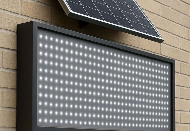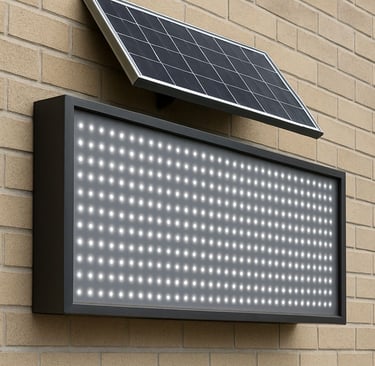 Lightweight, cost-effective sign boxes with sliding panels for easy design changes. Fully solar-powered.